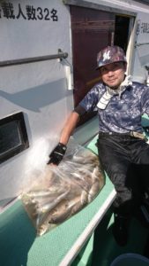 アタリ自体は散発的で相変わらず小アジも混じりましたが35センチ前後の大きいサイズも混じって皆さまお土産はバッチリ確保出来たようです。今日も手慣れのお客さまは数を伸ばして3番手まで束越えでした。