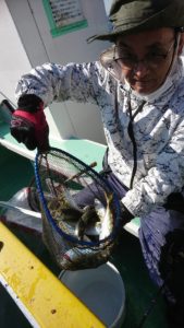 今日は北風がやや強く波も高めだったので、特に型は狙わずアタリが続いた場所で粘ったので後半も断続的にアタリは続いて35センチ前後の大きいサイズも混じって、皆さま、お土産は確保出来たようです。