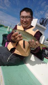今日は海上は穏やかで、釣りやすかったのですが、1日を通して潮の流れが弱く厳しい状況で、アタリは多くは無かったのですがトップの米沢様は6ヒットで本日最大4.7kgを含む3キャッチでした。