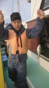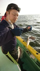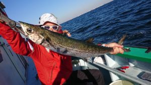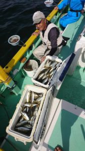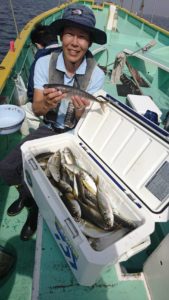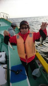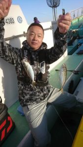 何とか船中7本まではキャッチ出来て、玉網を突き破って1本と玉網に入った瞬間にハリが外れて網から飛び出たもう1本は残念でした。