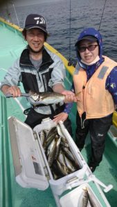 今日も海上は穏やかでしたが、昨日はサワラの跳ねは良く見かけたのですが、今日は1・2回確認出来た位でした。
