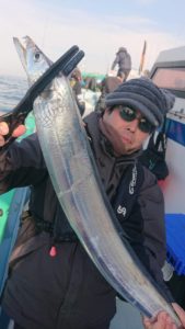 序盤に数本キャッチは出来たのですが今日も前半はタチウオの活性は低くくたまにヒットする程度でしたが、後半からは魚影がドンドンかたまり始めて、アタリの数も多くなり時合が到来しました。