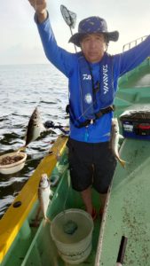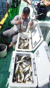 朝のうちは潮の流れが弱く、ポツリポツリと少し間隔野空いた釣れ方でしたが、次第に食い気が出てきて時々ダブルもあり少しずつアタリが続いてきました。