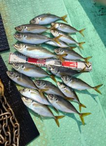 ※※来月よりルアー五目船も予定しております。タチウオ船の17号船がルアー五目船に切り替わる10月頃までは、16号船でアジ船かルアー五目船で先に揃った方で出船の予定ですのでご予約お待ちしております。