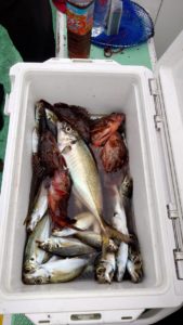 時間帯によって表層だったり、ボトムだったり広く探って頂き、ベイトは8センチ前後の大きめのイワシを捕食していました。