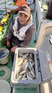 手慣れのお客様方はタナを選り分けて中型を選んで釣っていた時間帯もありましたが小アジの大きな群れが廻ってくるとそれも難しくなりました。