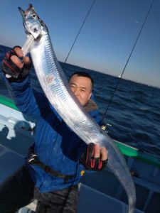 本年最後タチウオ船は、前半はタチウオのご機嫌ナナメで底から10m位出ている魚影でもアタリが少なく厳しい状況でした