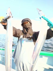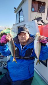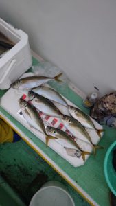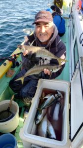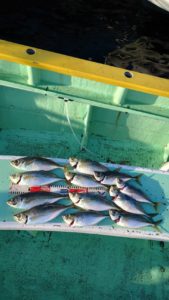 今日も移動した先々で入れ食いタイムがあり今日は幸運にも全員尺アジもキャッチ出来て皆さまお土産はバッチリ確保出来ました。