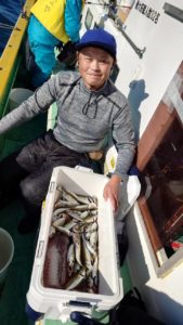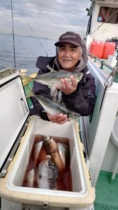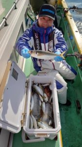 コメント: 今日もスタートから釣 れ始めてポツポツとアタリが続きました。今日も下げ潮に変わると食い気が一気に上がりダブル…トリプル…と入れ食いモードでアタリが続き、たまに中型も混じりました。